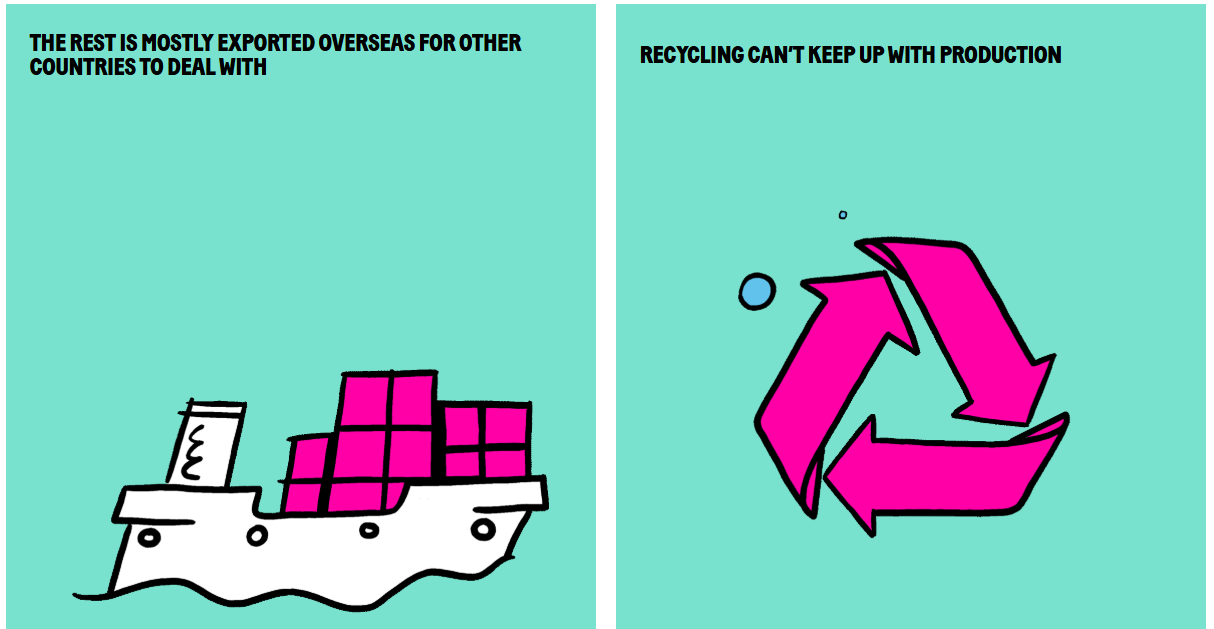 We are still exporting our plastic waste to other countries, often with even poorer recycling infrastructure than the UK. 16% of our plastic waste is exported, after which we don’t really know what happens to it.