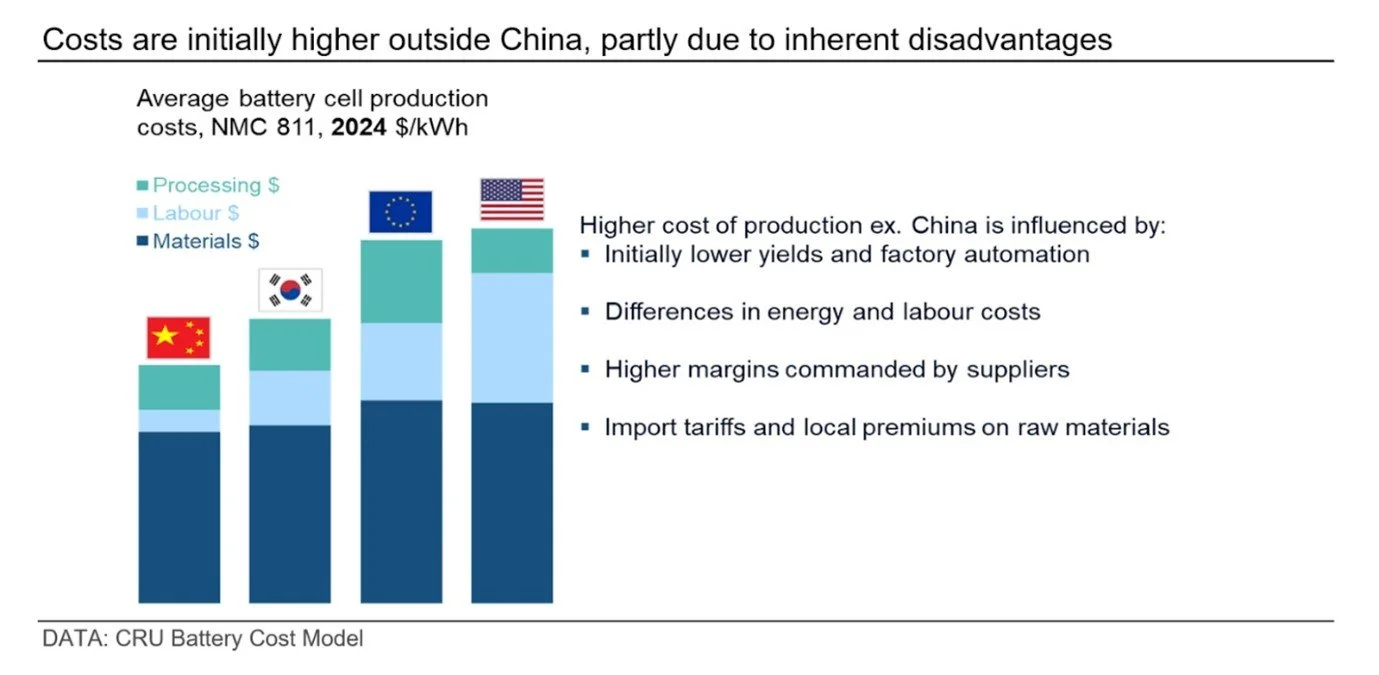 China’s battery manufacturers are efficient. It takes 50 Chinese workers to product 1GWhr worth of battery power in a BYD factory, 233 in other Chinese factories and 6 times as much in US factories.